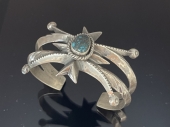 Stamped Carico Lake Turquoise Bracelet by Falcon Trading Co. /サイズM