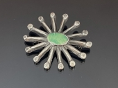 =Vintage= Cast Work Sunburst Design Turquoise Pin
