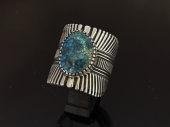 Stamped Coin Silver Turquoise Bracelet by Quaid SHorty/ サイズM