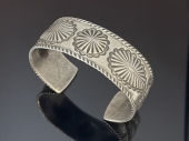 Stamped Coin Silver Bracelet with Red Mountain Turquoise by Perry Shorty/サイズM
